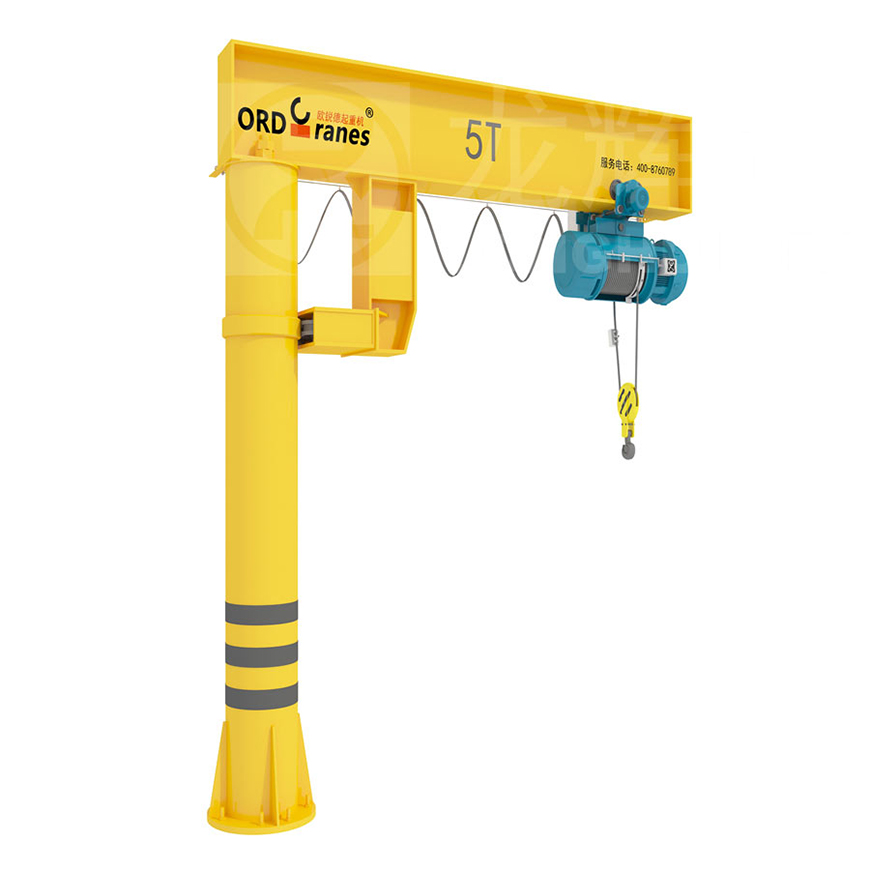 懸臂吊起重機工作強度為輕型,起重機由立柱,回轉(zhuǎn)臂回旋驅(qū)動裝置及電動葫蘆組成,電動葫蘆在懸臂工字鋼上作左右直線運行,并起吊重物。起重機旋臂為空心型鋼結(jié)構(gòu),自重輕,跨度大,起重量大,經(jīng)濟耐用。內(nèi)置式行走機構(gòu),采用帶滾動軸承的特種工程走輪,摩擦力小,行走輕快;結(jié)構(gòu)尺寸小,特別有利于提高吊鉤行程。