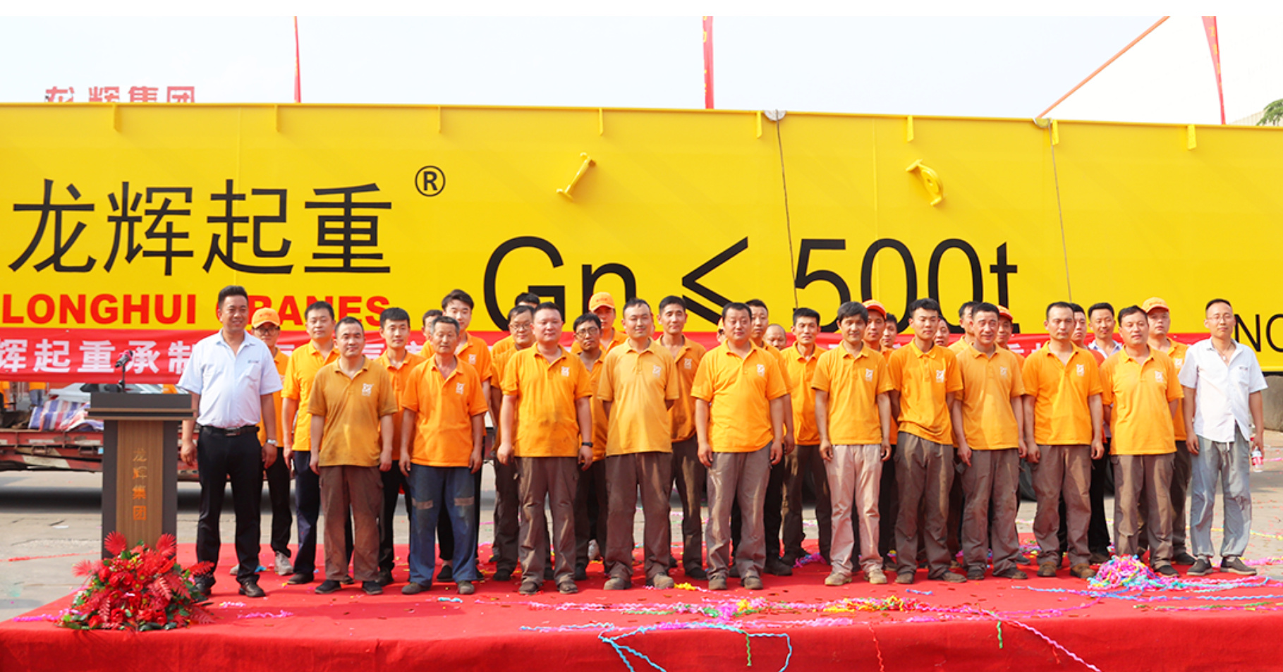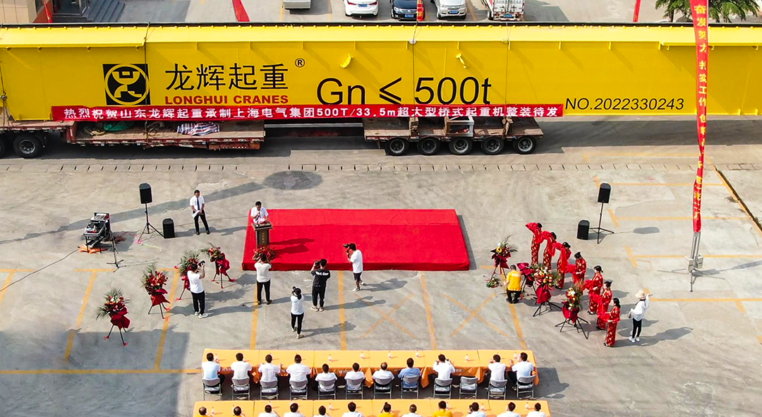 鼓樂齊鳴 歡聲雷動。儀式現(xiàn)場每一位在場嘉賓強(qiáng)烈地感受到龍輝起重上下一心、積極進(jìn)取、開拓創(chuàng)新的精神面貌。參加儀式的主要領(lǐng)導(dǎo)有:新泰市人大常委會副主任、黨組副書記亓桂鋒,羊流鎮(zhèn)黨委書記范育民,羊流鎮(zhèn)黨委副書記、鎮(zhèn)長林曦,羊流鎮(zhèn)武裝部長李宗武以及龍輝起重各級領(lǐng)導(dǎo)、各地合作商及銷售經(jīng)理等,現(xiàn)場200余人共同見證了此次出廠儀式。