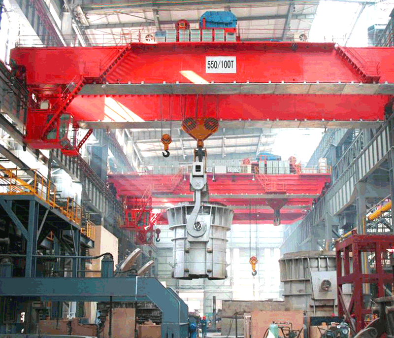 冶金起重機(jī)主要是在冶金行業(yè)的金屬煉制車間使用的起重機(jī)械,用于吊運熔融金屬的專用起重機(jī)。它的主要特點就是耐高溫,特別是鍛鉤和板鉤等吊鉤對高溫輻射的承載能力都很大。冶金起重機(jī)與其他的起重機(jī)的構(gòu)造是相同的,依然是依靠廠房內(nèi)預(yù)先鋪設(shè)好的軌道縱向行駛,利用自身的小車進(jìn)行橫向行駛。