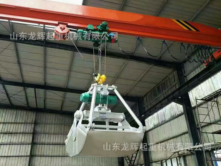 酒廠專用抓斗橋式起重機(jī)有開閉機(jī)構(gòu)和起升機(jī)構(gòu),抓斗以四根鋼絲繩分別懸掛在開閉機(jī)構(gòu)和起升機(jī)構(gòu)上。
